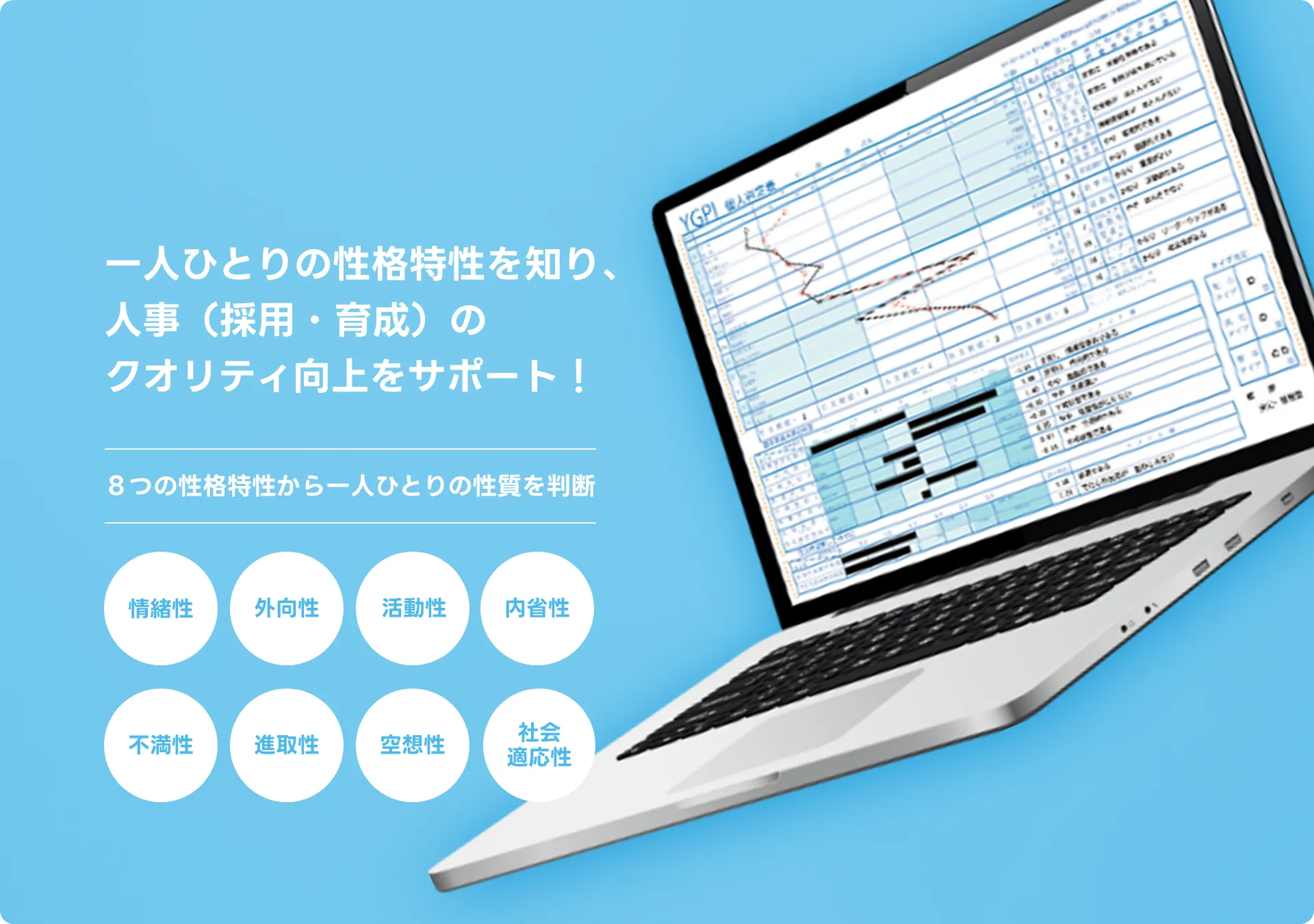 YGPIは、120問の質問に対する回答を心理統計学を用いて分析することで、受検者の特性を把握できる「性格検査」です。弊社は、創設者の辻岡美延がYGPIの開発に携わって以来、50年以上にわたり研究・実績を重ね、多くの資料を蓄積。科学的根拠のある信頼性と妥当性の高い検査結果を提供することが可能です。