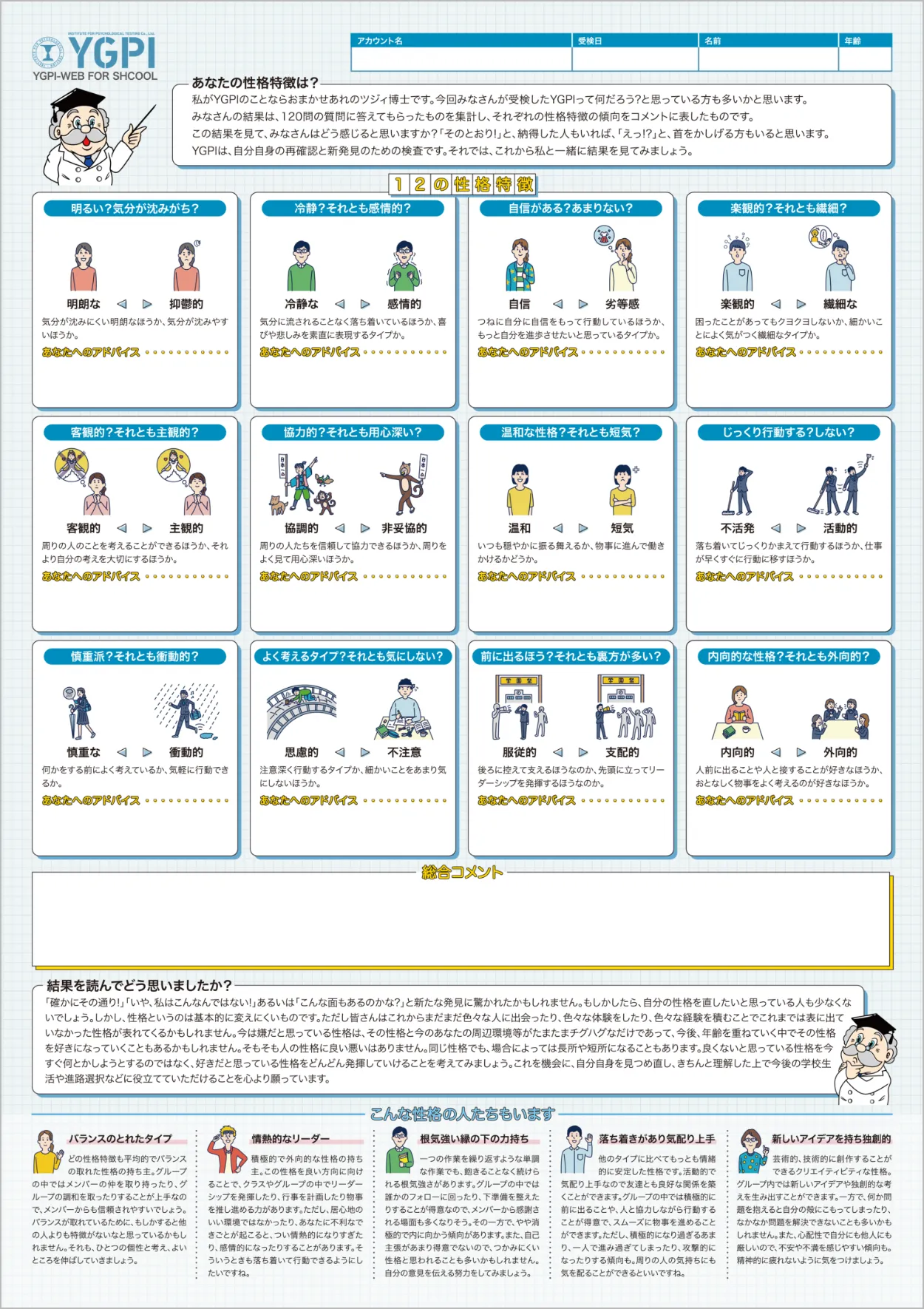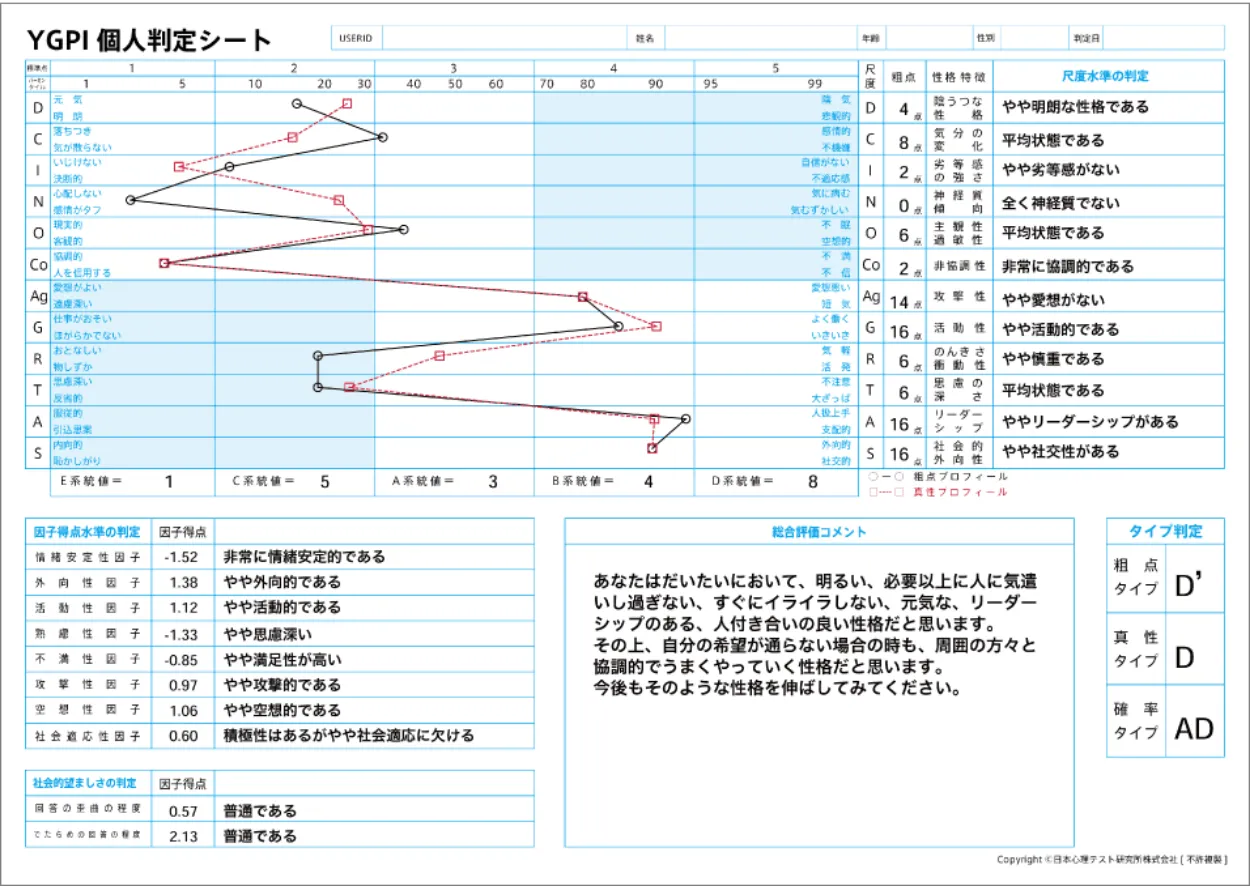 判定結果を元に、受検者の性格特性を把握して、企業・学校のお悩み解決に役立ててください。